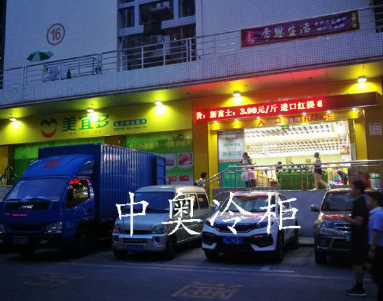 案例名稱:福田梅林美宜多超市七門冷柜中奧生鮮超市冷柜